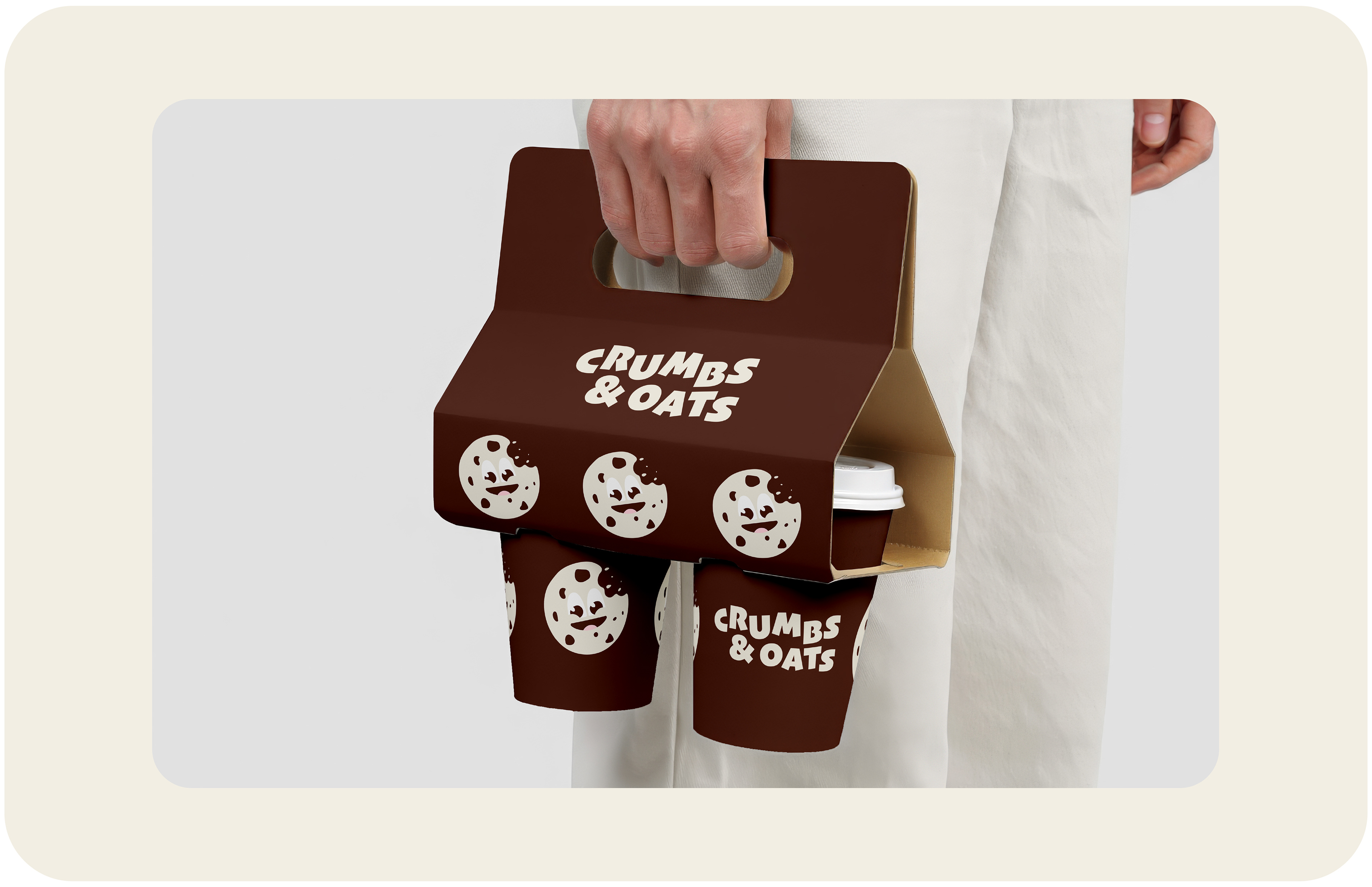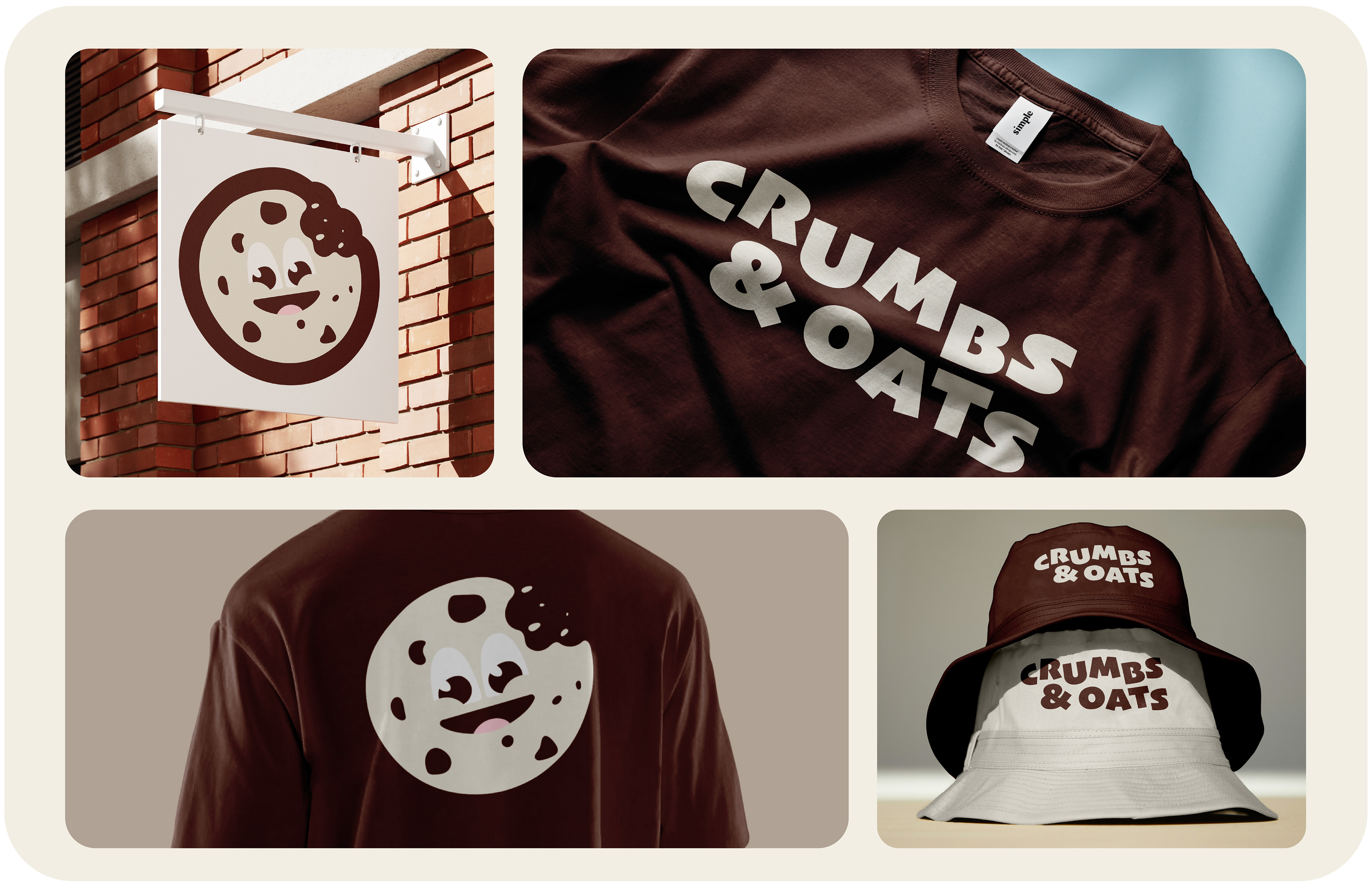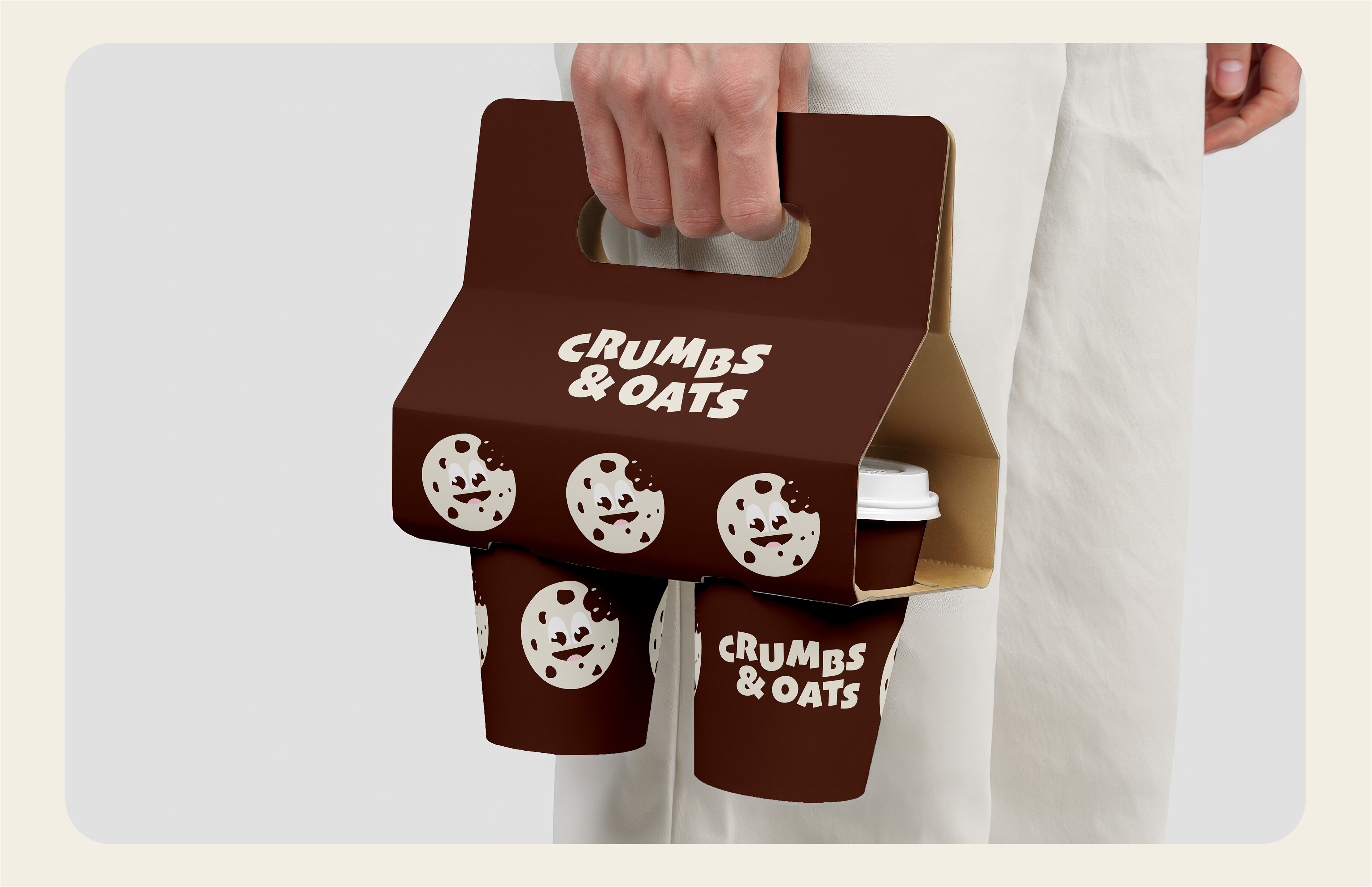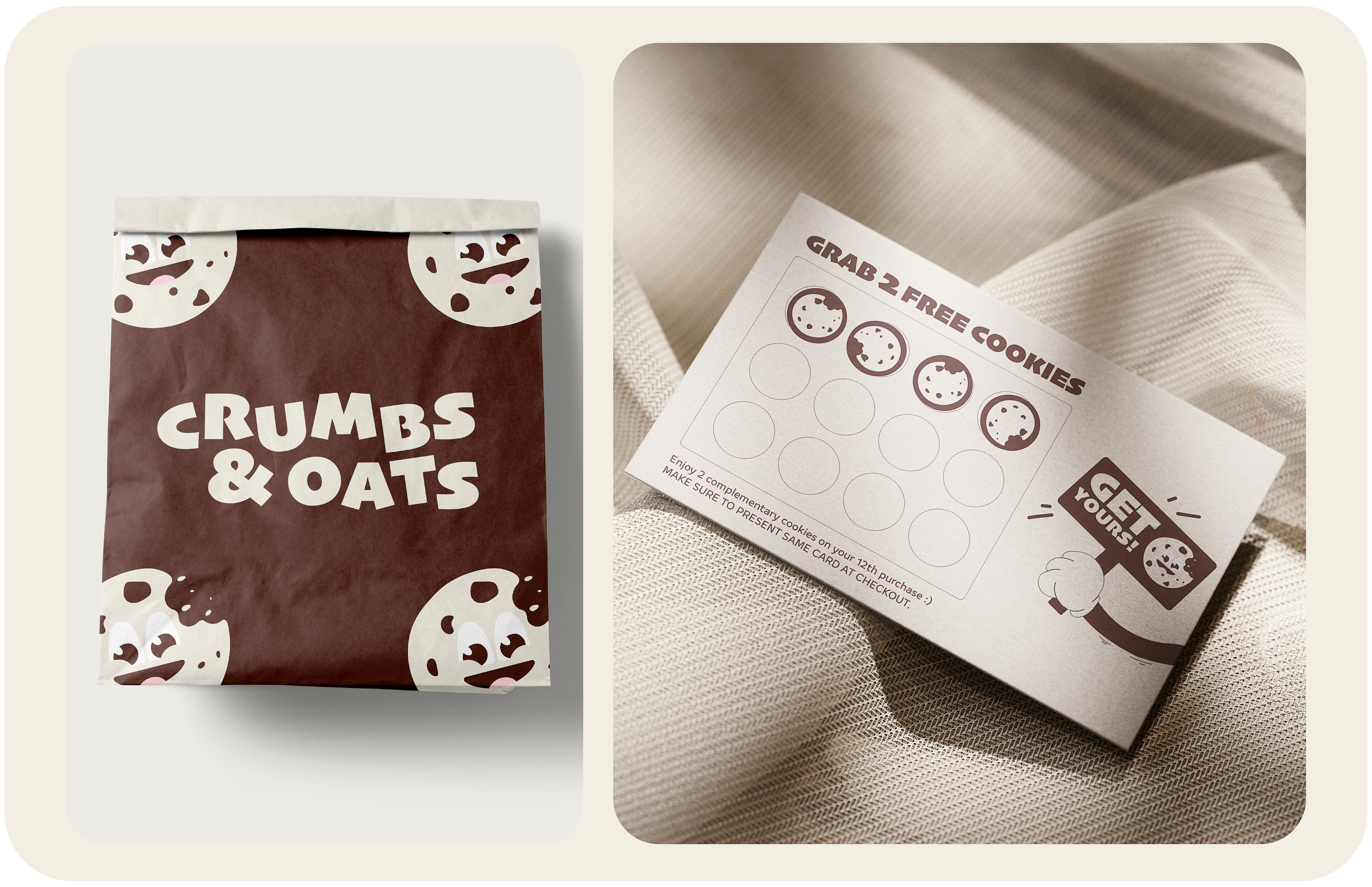 Crumbs & Oats is your go-to for delicious oatmeal cookies. Feel the warmth in each bite with these freshly baked treats, as if they were made right from your home. Some might even say they are oat of this world. Using a warm colour palette and friendly illustrative elements, the result is an cohesive visual identity that feels irresistibly delicious.