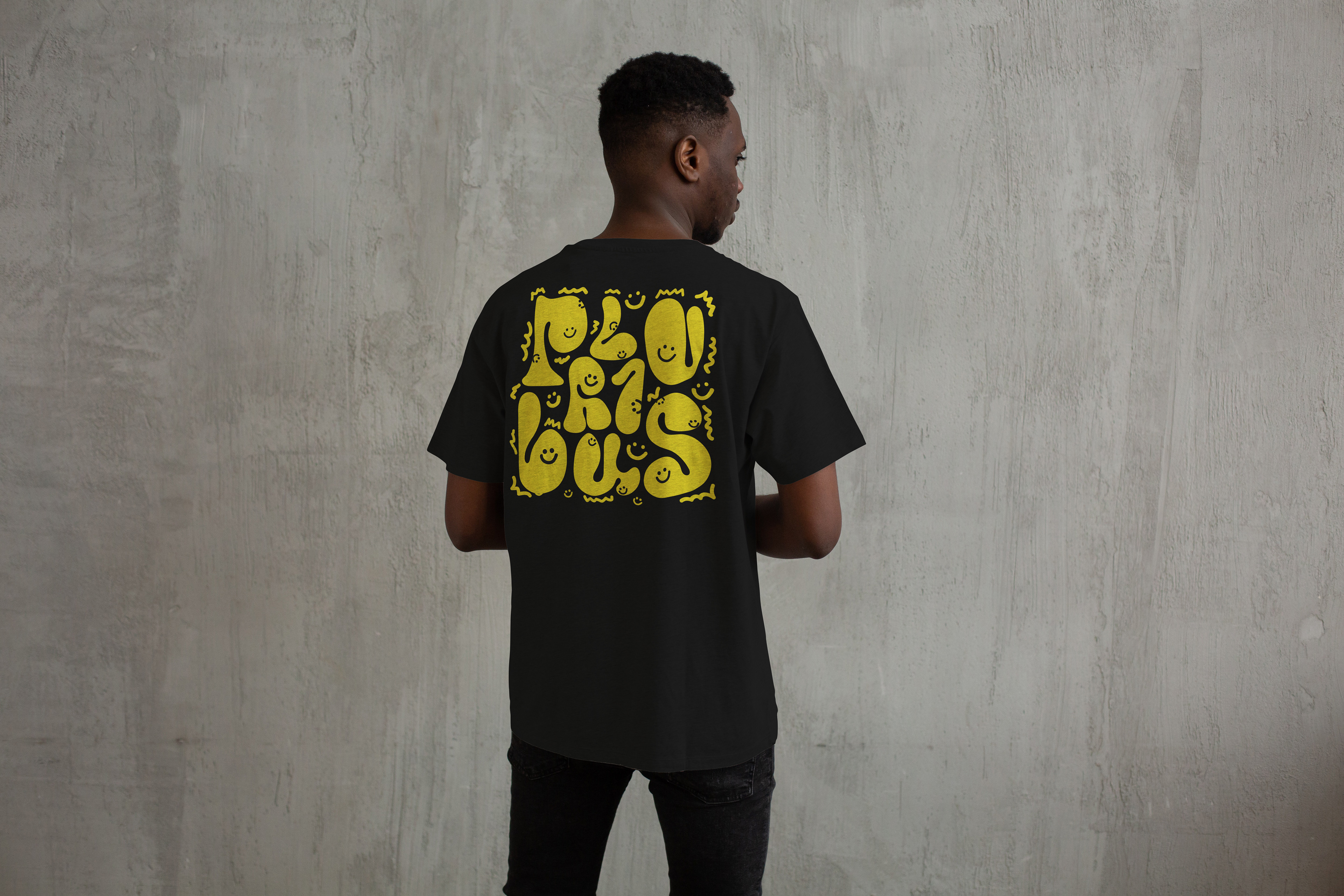 with custom typography on the back.
